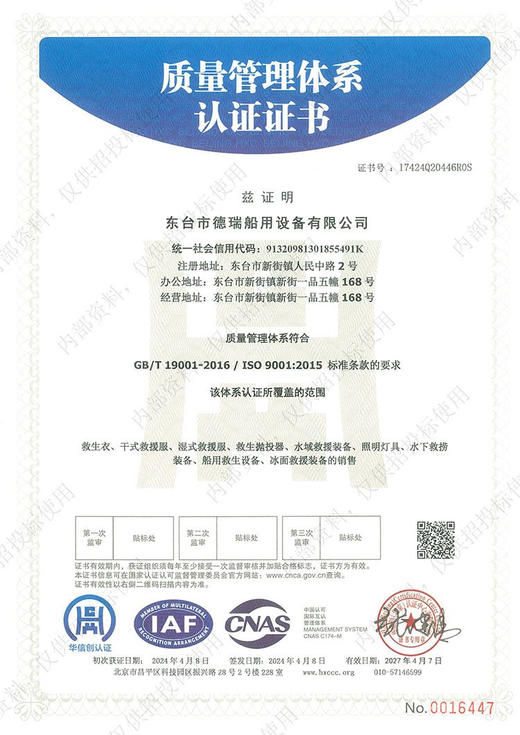 東臺市德瑞船用設備有限公司成立于2014年,注冊資金50萬元,是江蘇省東臺市地區(qū)一家專業(yè)的貿(mào)易公司,提供船用設備、消防器材、體育用品、服裝、鞋帽、金屬材料、勞保用品、安全監(jiān)視報警器材銷售等,在安全防護-消防器材行業(yè)獲得廣大客戶的認可。